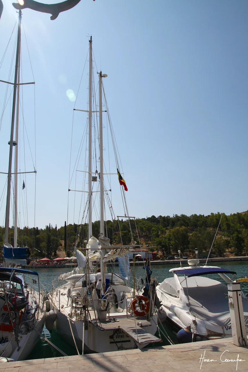 The bus dropped me off in Galaxidi's town square. Not knowing exactly how far the harbour was (and not wanting to carry my heavy bags aimlessly), I went to a local store to ask for directions. Once the shopkeeper saw my bags, she yelled down a friend of hers who gave me a ride to the harbour. There were a number of sailboats in docked there, but I found Maurizio's ship, "Oxalis", quite easily--it hasn't changed a bit since I saw it last all these years ago! Maurizio and his friend Lisa went for a walk around the town, but came back to let me in the ship. I unpacked, settled in my cabin and then we all went for late-night walk.